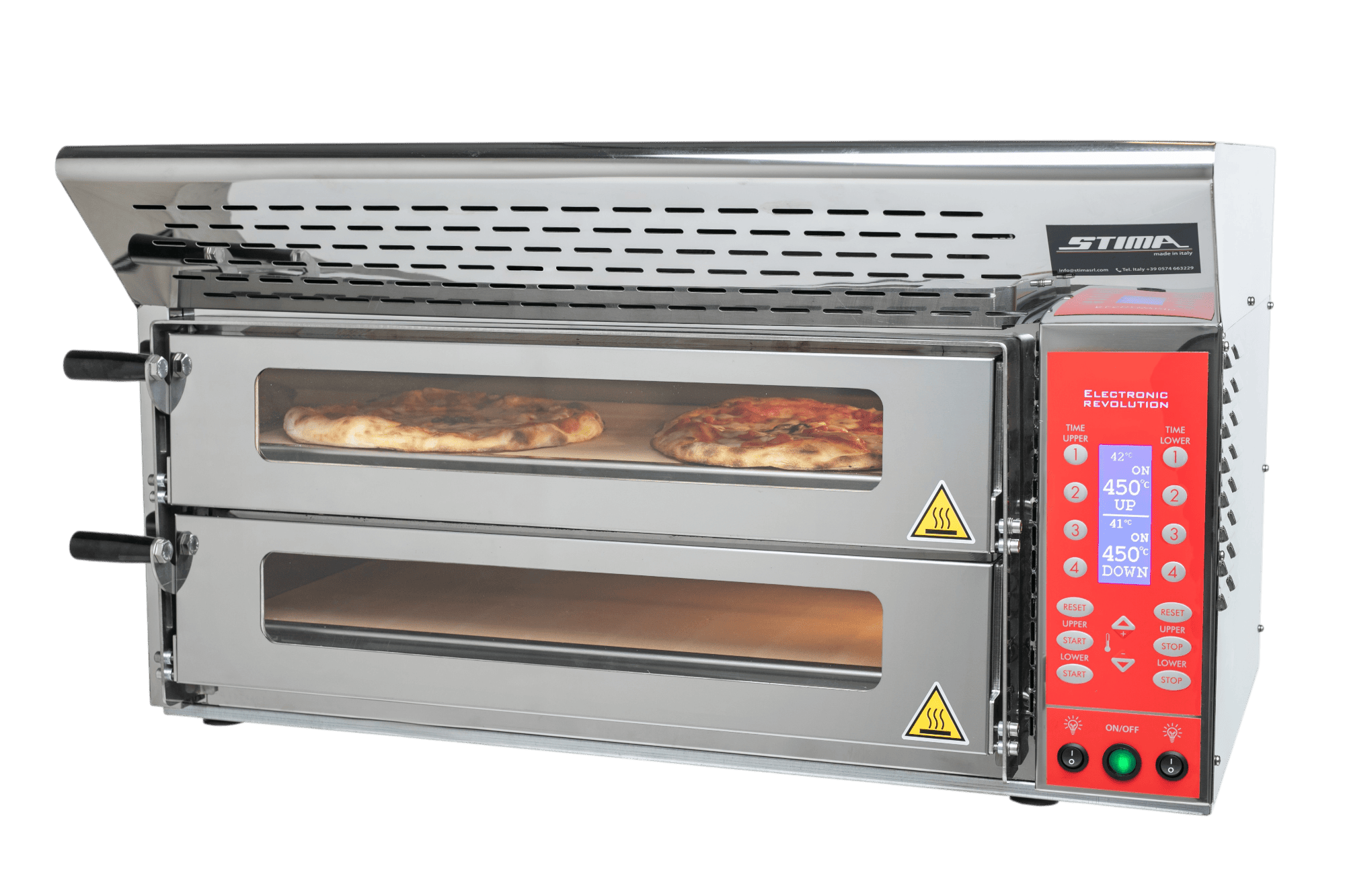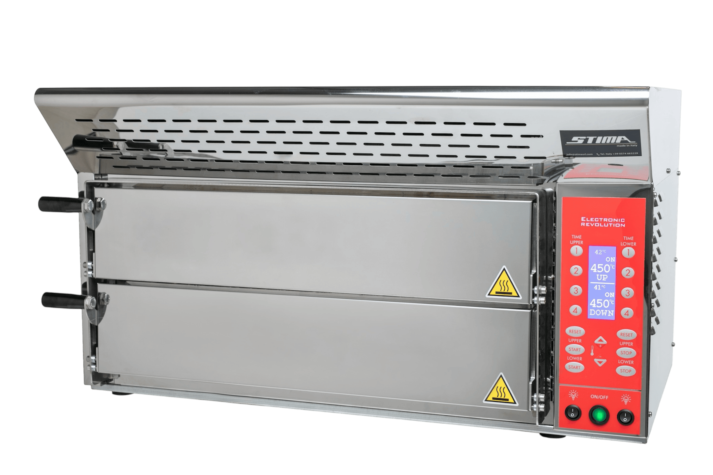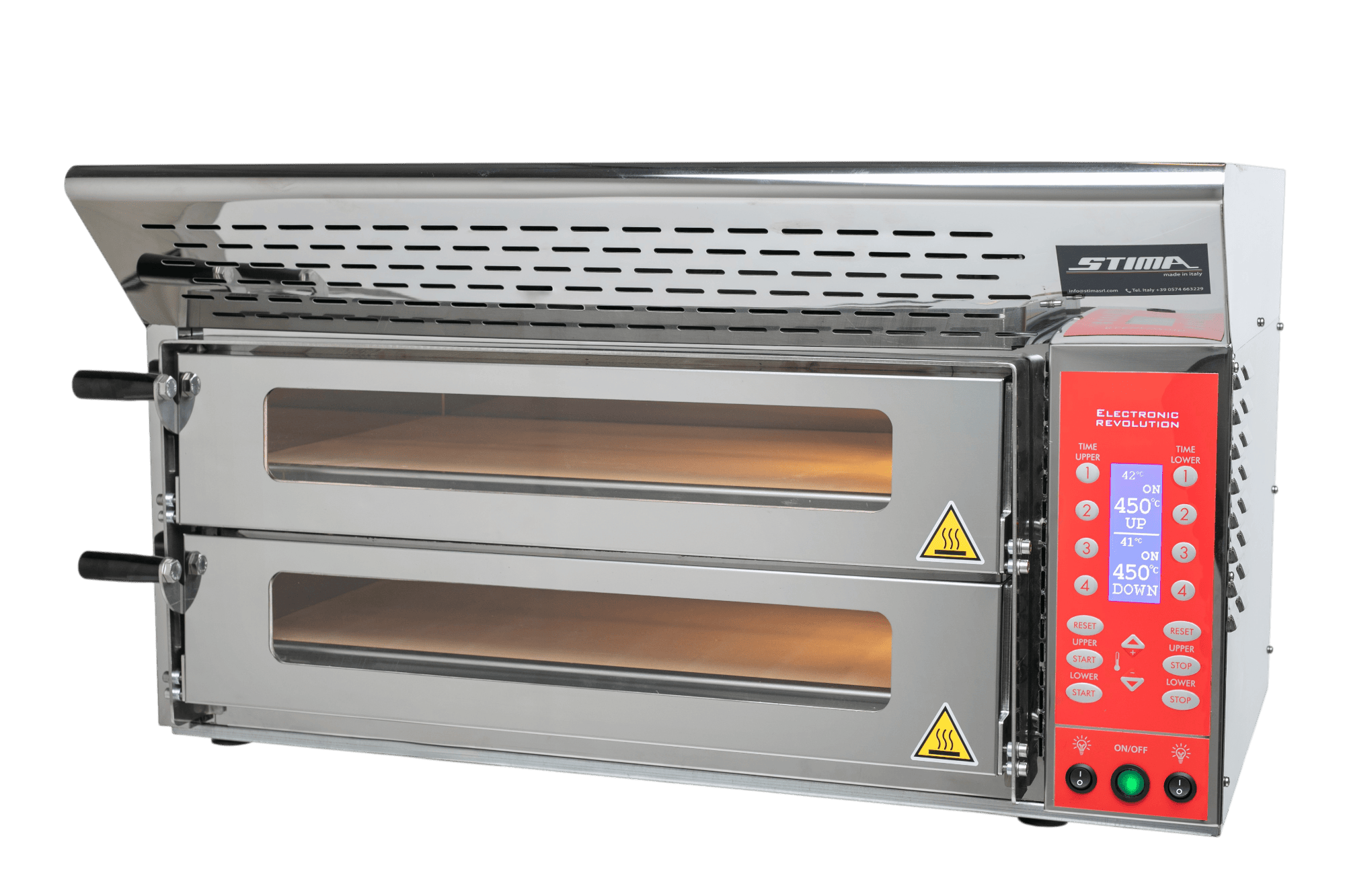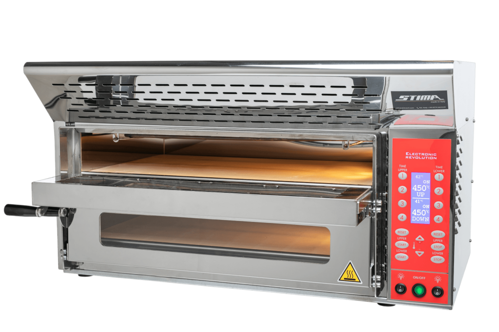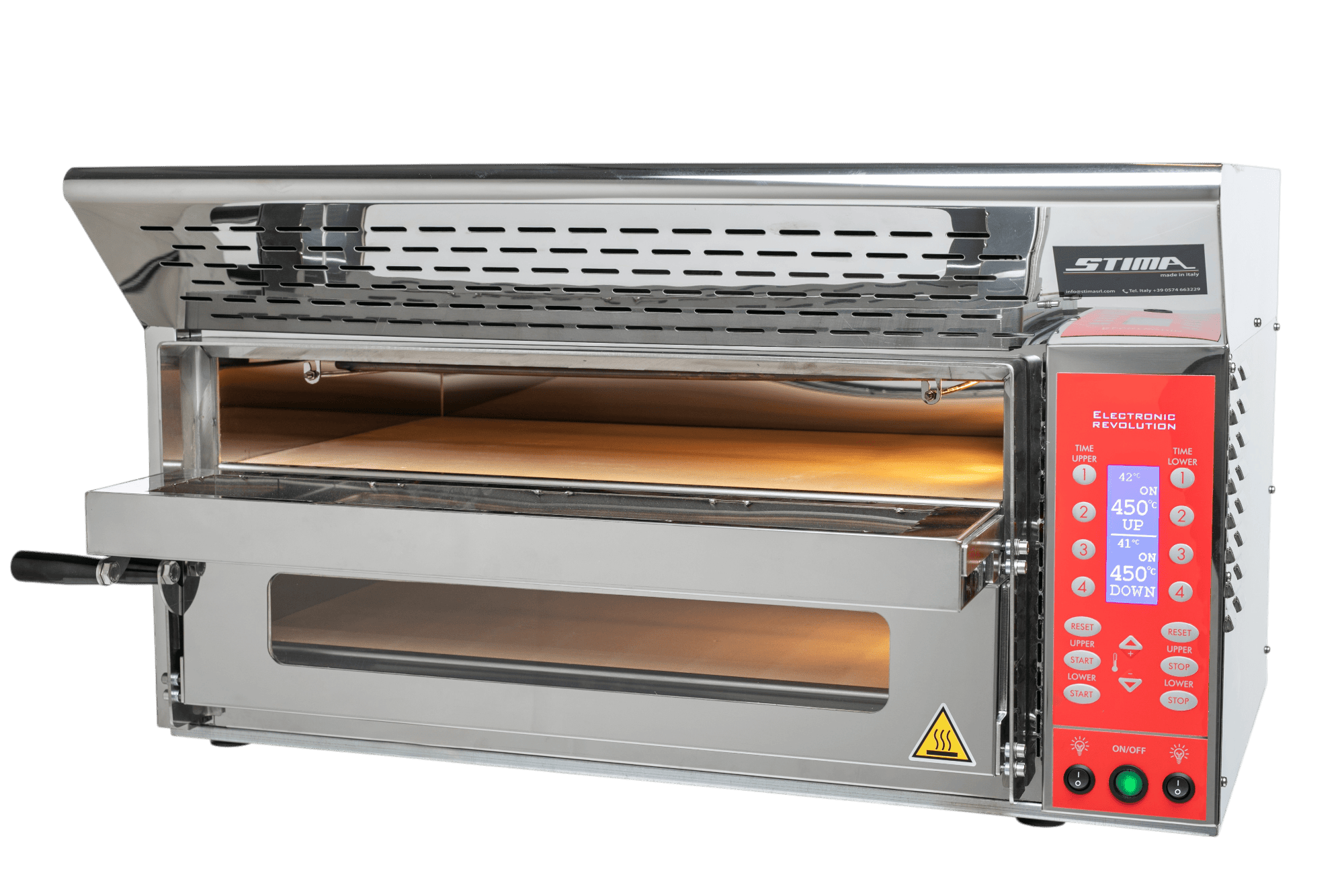 Il Forno pizza elettrico di Stima srl è l’ideale per Bar, Paninoteche, Chioschi attrezzati.
