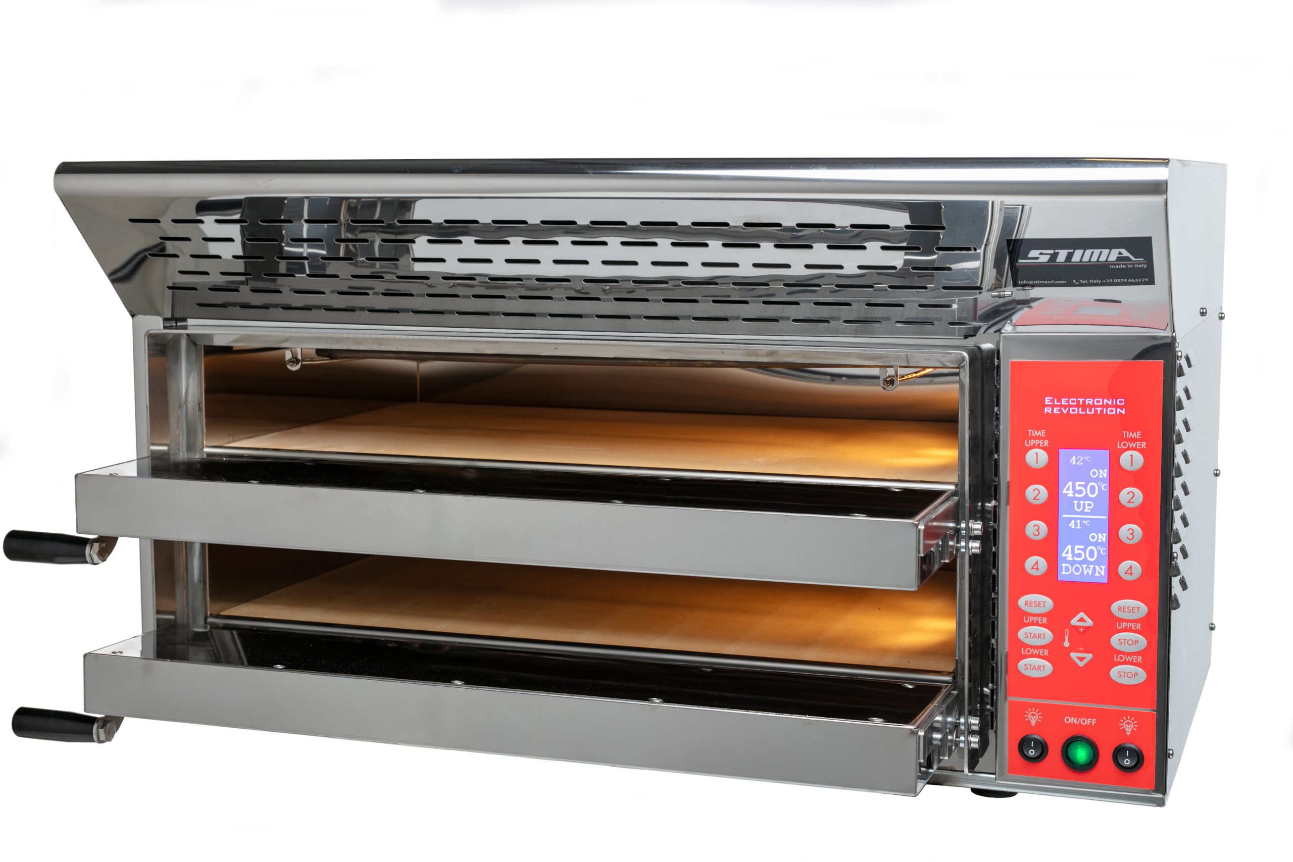 Stima srl presenta la nuova versione del forno Revolution, un sistema di cottura innovativo che permette di cuocere rapidamente qualsiasi alimento, con risultati omogenei e di alta qualità. Ideale per pane, pizza, carne, pesce, verdure, lasagne, cannelloni e molto altro, raggiunge fino a 520°C.