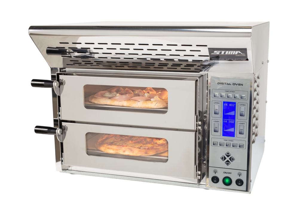 Digital Oven AI es un horno eléctrico profesional de doble cámara, diseñado y fabricado en Italia por STIMA SRL, para garantizar alto rendimiento, calidad de cocción constante y máxima eficiencia operativa.