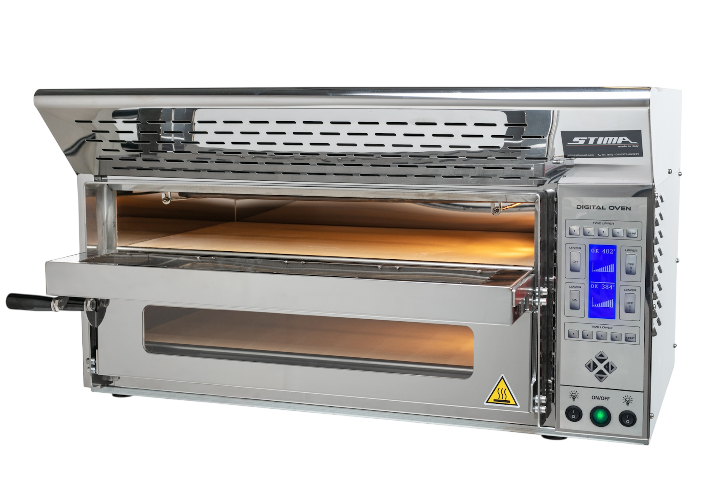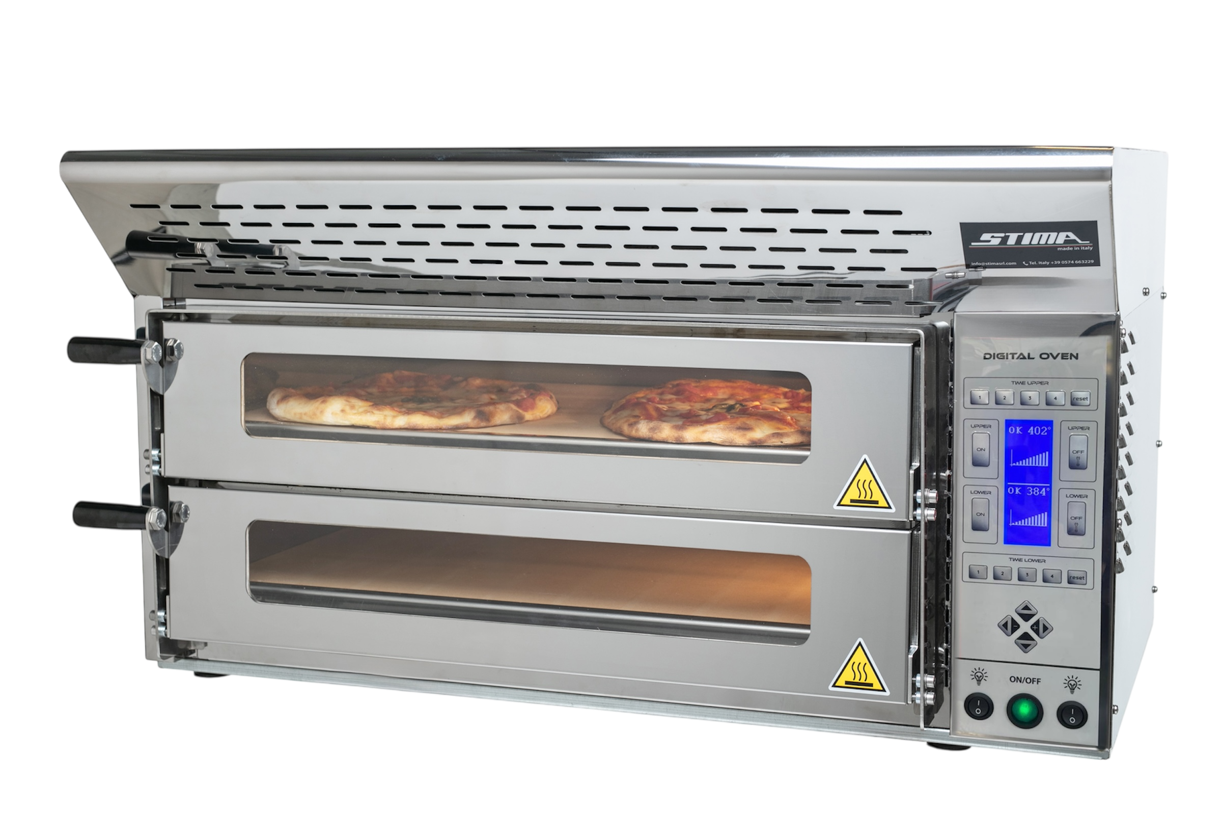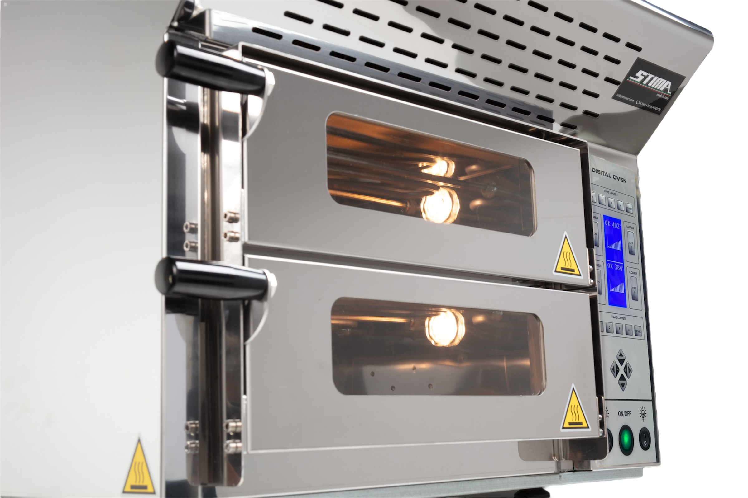 Digital Oven AI ist ein professioneller elektrischer Doppelkammerofen, entwickelt und hergestellt in Italien von STIMA SRL, um höchste Leistung, konstante Garqualität und maximale Betriebseffizienz zu gewährleisten.